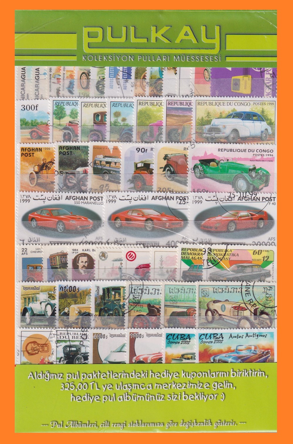 DAMGALI 50 ADET ÇEŞİTLİ ARABA TEMALI ÜLKE PULLARI